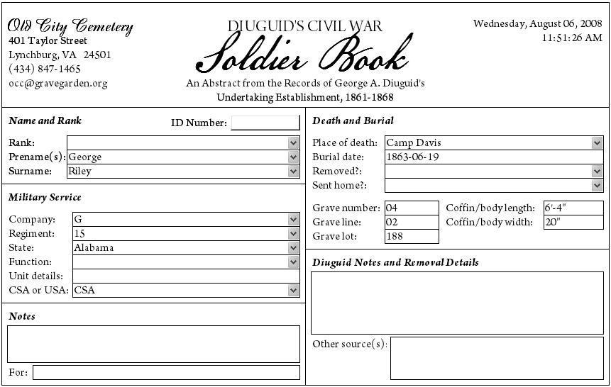 GEORGE RILEY (SON OF EDWARD) CIVIL WAR RECORDS
