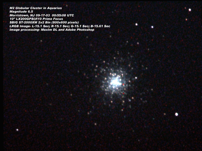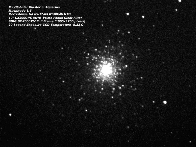 M2 globular cluster taken on 09-17-2003 with the SBIG ST-2000XM at prime focus.